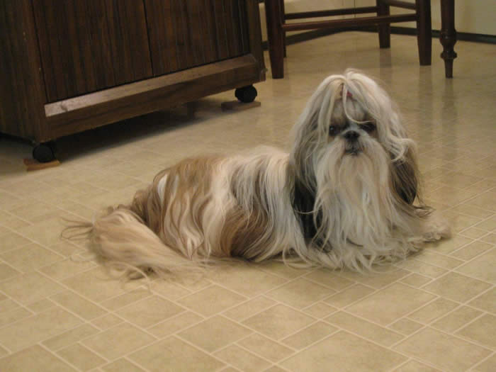By the time C'est Si was 3 months old, she knew 5 tricks and could dance up a storm on her rear paws to "Yakety Sax," her favorite song. Though we had two others, C'est Si's coat is the only one with the proper consistency that allows us to groom her in the traditional long-coat Shih Tzu style.